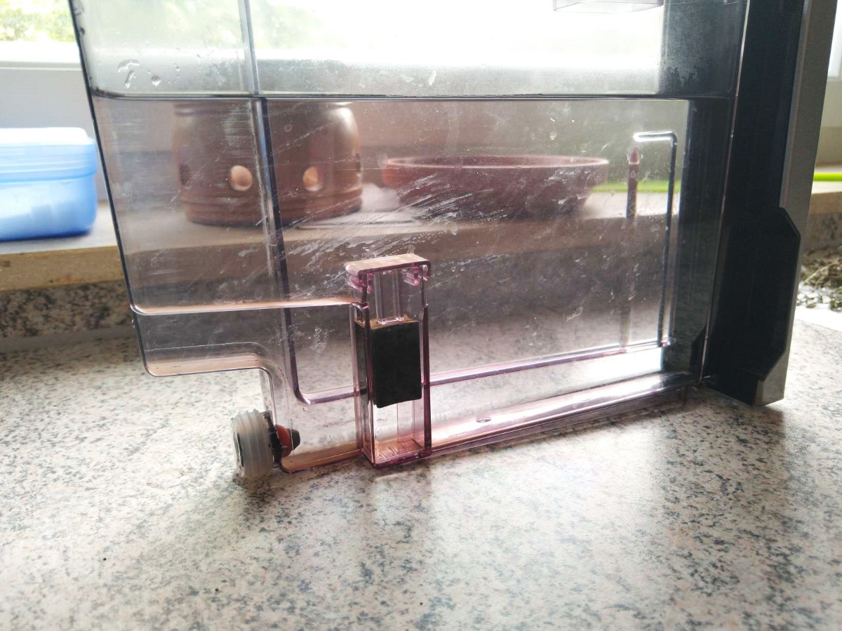 ich habe die Maschine nun schon fast 10 Jahre und bin eigentlich auch ganz zufrieden. Vor ca 1/2 Jahr habe ich die Heizung getauscht, da der Kaffe nicht mehr richtig warm wurde. Dann war alles wieder o.k. Nun habe ich aber das Problem, dass bei der Kaffeezubereitung und auch beim spülen der Maschine nicht das ganze Wasser in den Kreislauf kommt. Etwas Wasser fließt gleich in den Auffangbehälter und die Tasse wird daher auch nicht mehr ganz voll. Ich habe die Maschine aufgeschraubt und alle Leitungen überprüft. Die sind alle fest und da konnte ich auch keine Undichtigkeiten erkennen. Nun habe ich den Frischwasserbehälter bzw. den Zulauf in Verdacht. Kann es sein, daß es da zu Undichtigkeiten kommen kann ? Wenn ich den Behälter hinstelle, dann sind da immer einige Tropfen auf der Küchenplatte. Der Wasserbehälter ist allerdings erst ca. 2 Jahre alt. Der alte war mir runtergefallen und hatte einen Riss bekommen, sodaß ich diesen neu kaufen musste. Ich habe einige Bilder gemacht. Über einen guten Rat wäre ich sehr dankbar. Schon mal besten Dank im Voraus.