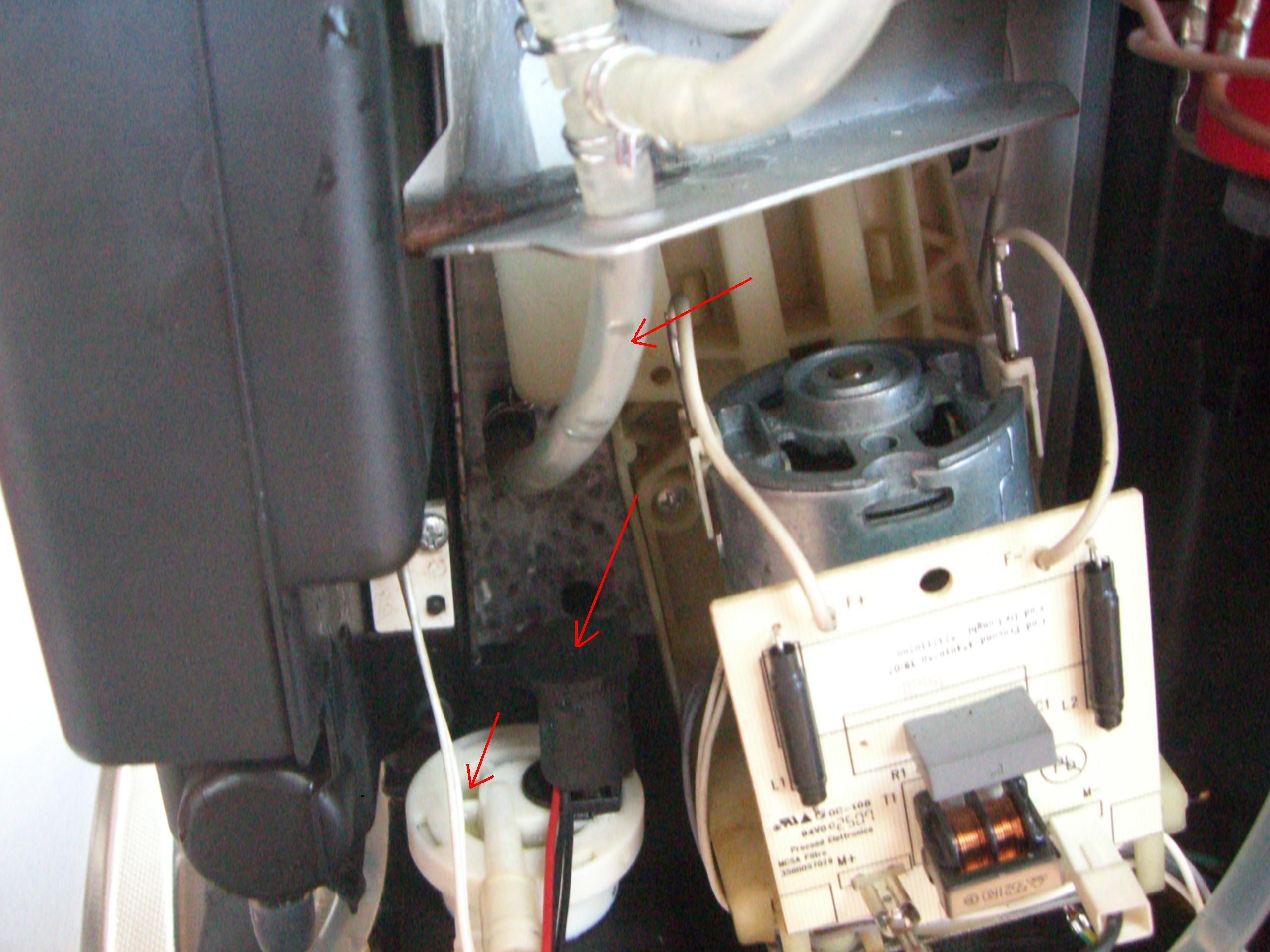 Diesmal habe ich Euren Tipp des Entkalkens des BK durchgeführt. Das Entkalken ging gut, jedoch beim Durchspülen da hat sie mir doch glatt die Sicherung durchgeknallt.Ich habe sie aufgeschraubt und habe auch gleich fotografiert wo sich Wasser befand. Bis auf die mit den roten Pfeilen markierten Stellen gab’s auch Wasser unter dem Ventilöffner und das „Flowmeter“ war auch total nass.Tja, da steh ich nun mit meiner Weisheit und befürchte Schlimmes.Übrigens habe ich auch gesehen, dass sich im Wasserfilter irgendwelche Schmutzpartikelgesammelt haben? Könnte es evtl. daran liegen?Wenn man bei Euch Rat weiss? Ist vielleicht eine olle Kamelle mein Problem, aber für mich ist sie neu J.