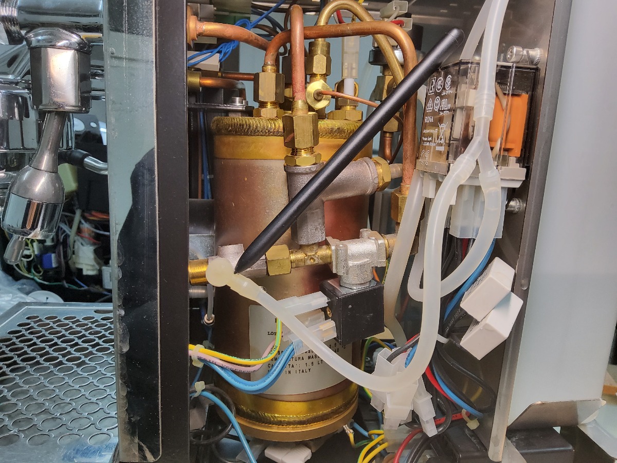 Ich sitze hier an einer Bezzera B10. Beim Kaffebezug baut sich kein Druck auf. Setze ich Blindsieb ein, geht der Druck 11,5 bar hoch. Beim Expansionsventil geht ständig Wasser zurück in Tank. Ich sitze gerade echt auf dem Schlauch. Hoffe ihr könnt mir da weiter helfenI# Hier neben dem Expansionsventil wo mein pen sitzt kommt zügig Wasser zurück in den Tank