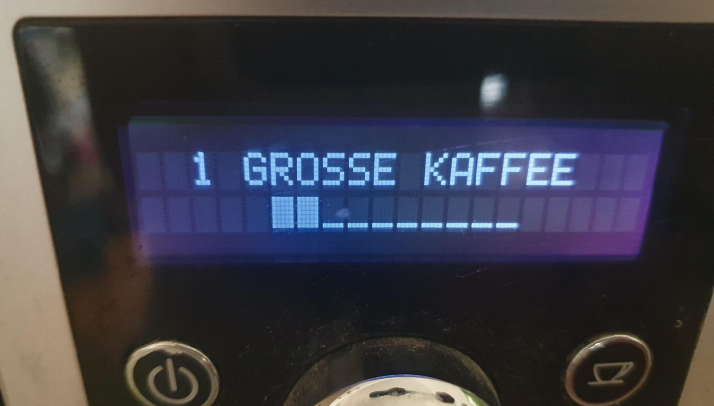 Vorbereitung begint, Kaffeebohnen werden gemahlen und vor dem Wasserdruckerzeugung kommen diese 2 Meldungen: