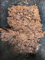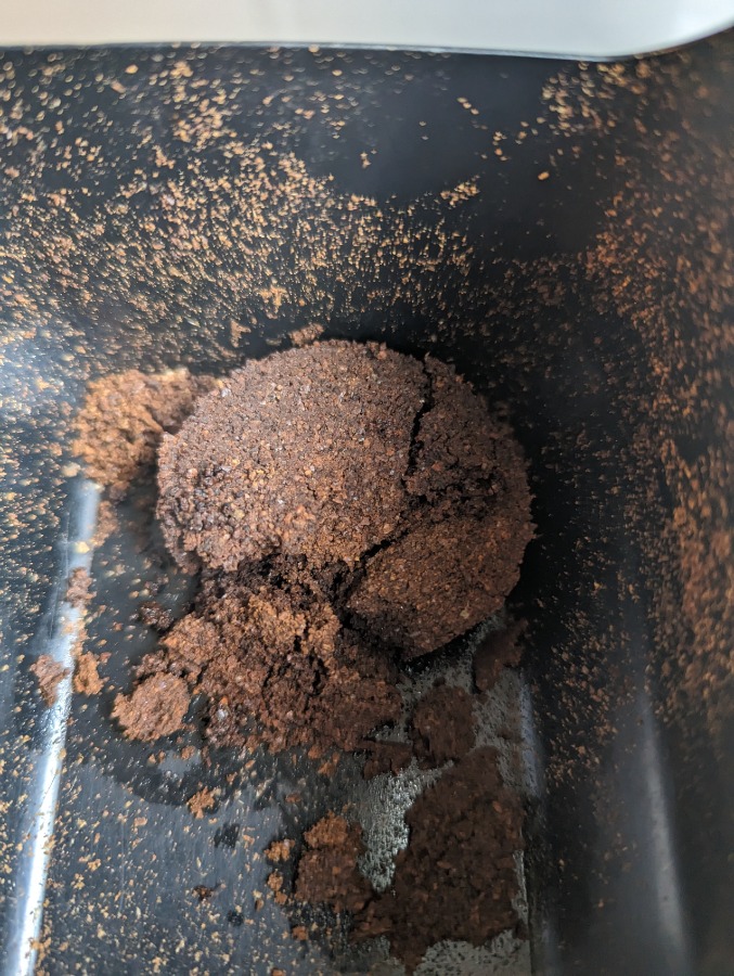 Sofort ist der Mahlgrad wesentlich feiner und der Trester klebt auch wieder kompakt zusammen.