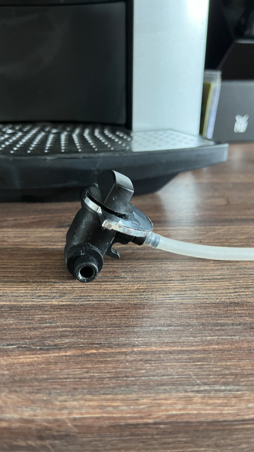 Aber so hat die nicht ausgesehen. Ich habe die Maschine ohne Düse gebraucht gekauft, aber wir hatten früher schon mal eine F50 und da sah die Düse irgendwie anders aus. Das Auslassloch war glaube ich nicht mittig und sie war unten schwarz. Wenn man googelt, dann sehen die Bilder auch anders aus. Detailbilder finde ich leider keine.