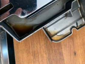 Das obere Bild zeigt die Innenseite der Frontklappe - hier fließt auch etwas Kaffee über die Innenseite der Tür in die Auffangschale. So als ob zuwenig Kaffee vom Brühgruppenauslass in diese Ausgabekammer gelangt.