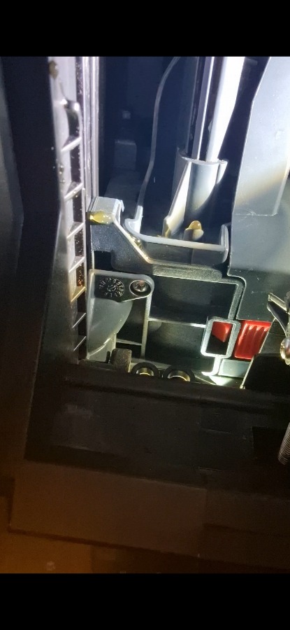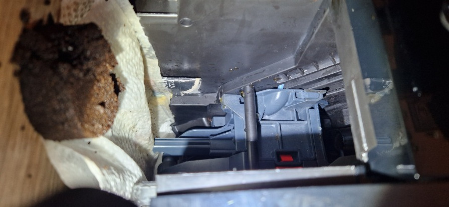 Aber nun ist immer eine kleine Menge Kaffee unter der Maschine, weshalb ich einen Microschalter überbrückte um nachzusehen. Sah dann, dass seitlich an der Brühgruppe, dort wo ein kleiner Stutzen ist an der Brühgruppe ein wenig Kaffee beim zurück fahren der Brühgruppe entlang läuft.