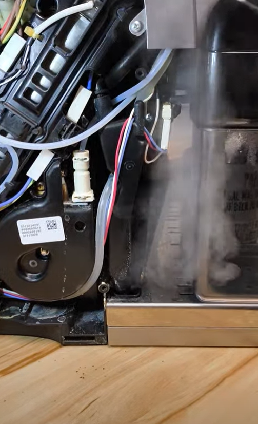 ich besitze eine Dinamica Plus ECAM 370.95.S. Seit einigen Wochen fliegt der FI Schalter immer dann wenn ich Getränke beziehen möchte die Dampf benötigen. Nach einigen Recherchen hier im Forum, habe ich das Gerät geöffnet und im offenen Zustand mal geschaut was passiert. Die hier üblichen beschriebenen Punkte wie die Dichtung an der Dampfheizung sind es nicht. Bei mir strömt massiv viel Dampf aus der Expansionskammer unten am Überlauf aus. Das hat zur Folge das der Dampf sich in der Maschine verteilt und kondensiert. Anschließend fliegt der FI Schalter. Jetzt zu meiner Frage an was kann es denn liegen, wenn dort unten so viel Dampf raus kommt? Meine Vermutung ist ja das 3 Wege Solenoid Ventil, aber das ist nur geraten?