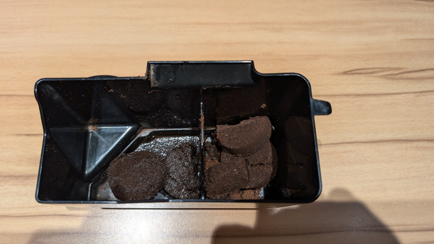 Und zwar sind die Kaffeepuks beim Auswerfen viel zu feucht, fast schon nass. Dadurch landen sie nicht ordentlich im Trester und sauen in der Maschine ordentlich rum. Habe schon mit dem Mahlgrad (steht etwa auf 3/10) rumgespielt und die Brühgruppe komplett zerlegt und Gummis getauscht. Leider ohne Erfolg.