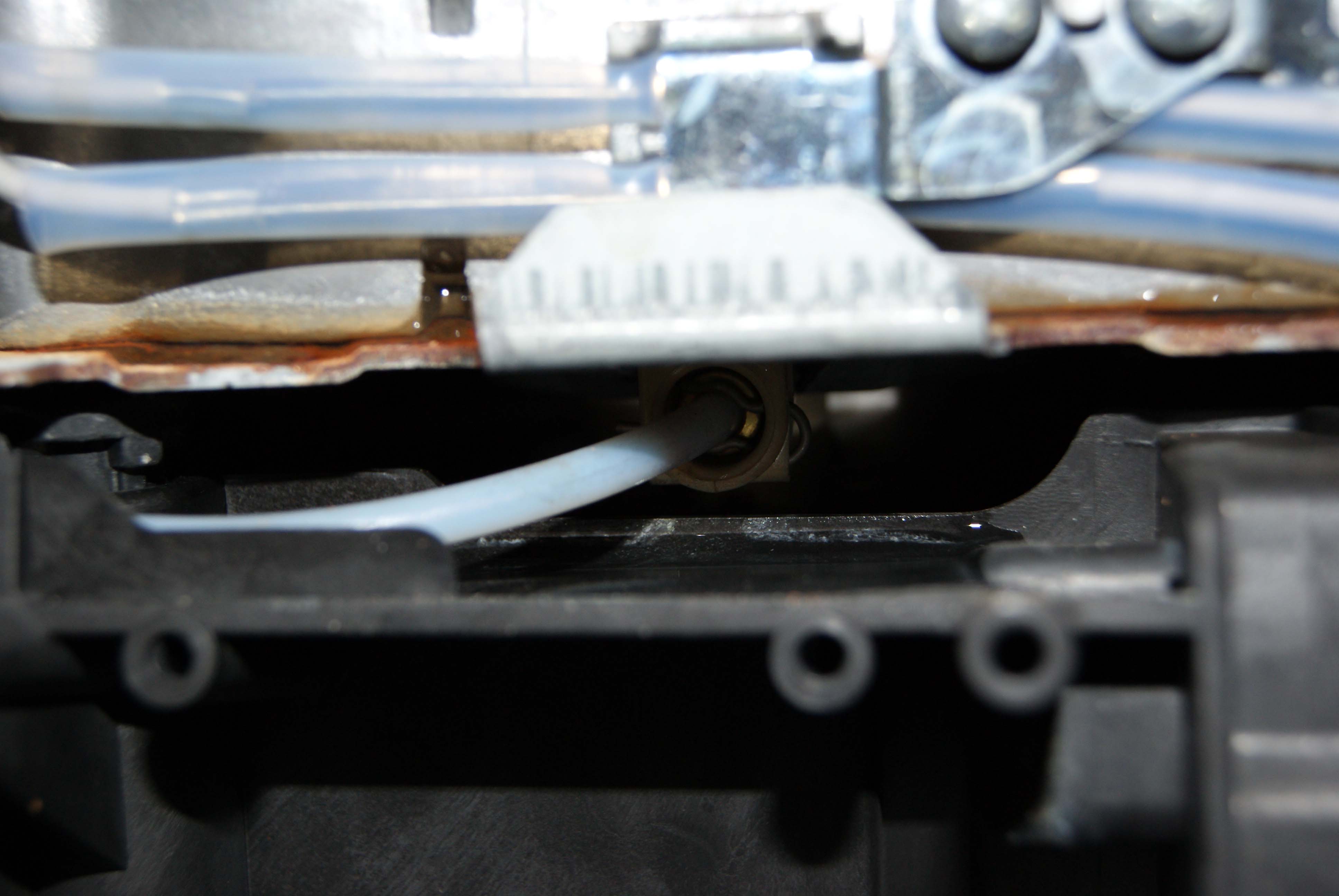 Ich habe jetzt die maschine aufgeschraubt und ein paar bilder gemacht. ich glaube es liegt an diesem baustein, denn er ist anscheinend verkalkt und undicht (siehe bilder)