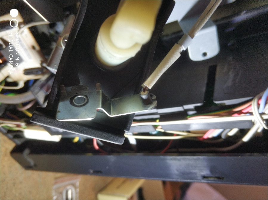 Nun habe ich die Maschine geöffnet und die Termosicherungen gemessen. Die obere zeigt Durchgang und die untere OL - also durchgebrannt. Ich habe nun geschautm, wie ich dieses wecheseln kann und die entsprechenden Schrauben der Trägerplatte gelöst.