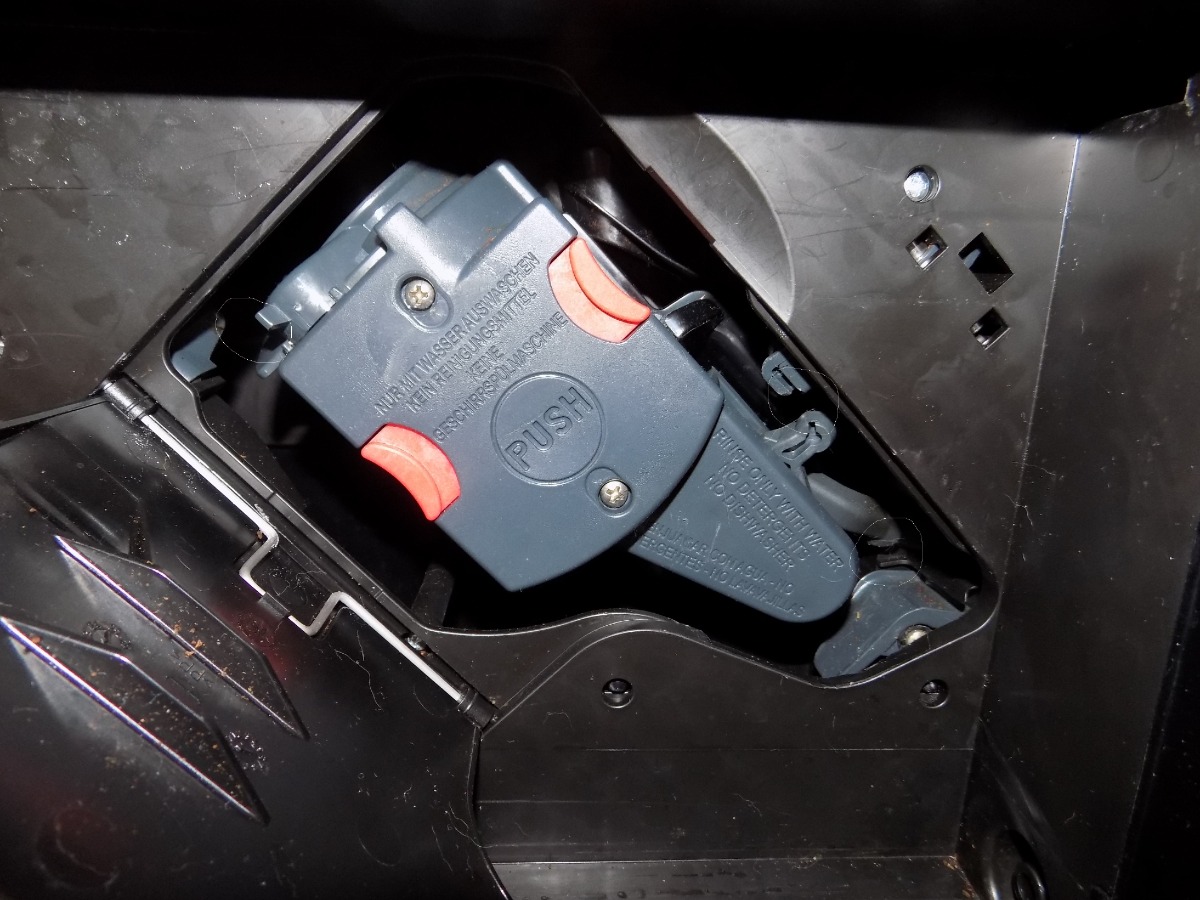 • Danke! Ja, dachte erst, dass du recht hast aber mein Bild ist wohl leicht schräg von oben aufgenommen. Eigentlich sind die beiden roten Entsperrknöpfe genau mittig zu den runden Aussparungen wenn man senkrecht draufschaut. Und dann sieht der untere Bereich auch besser aus. Aber möglich wäre es dennoch. Tatsächlich berührt das Teil das von oben herunterkommt meine Brüheinheit. Bei dir ist das nicht so.