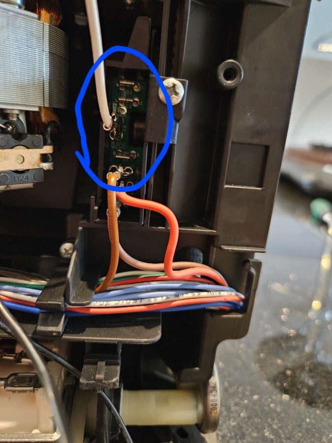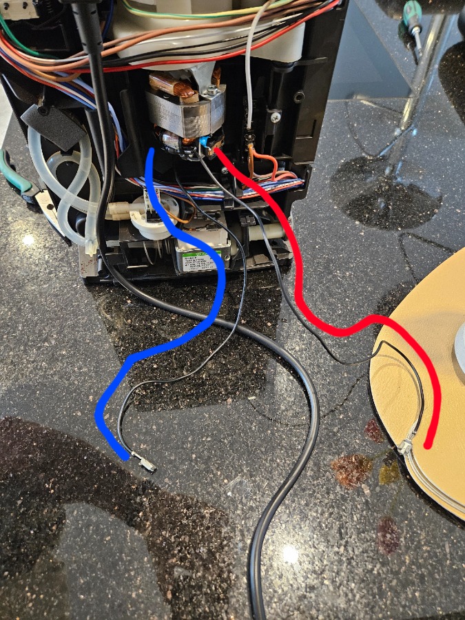 Daraufhin haben wir ein neues Mahlwerk bestellt (in der Hoffnung, dass dies die Fehlerquelle ist). Leider habe ich keine Fotos vom Ausbau gemacht und die Lieferung des neues Mahlwerks verzögerte sich um 18 Werktage und habe ich vergessen, wo die beiden Kabel angeklemmt werden