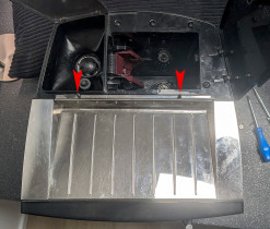 Um an die Mühle und den Microschalter für den Deckel zu kommen diese Schrauben lösen.