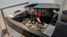 Ich habe bei der Suche nach einer Anleitung die Maschine zu öffnen festgestellt das es zu diesem Modell nichts gibt. Hier also ein paar Bilder von meiner Exkursion, teilweise Details in den Antworten weiter unten - Have Fun!
