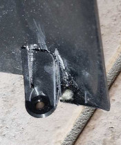 Zum Einbau werden die horizontalen Teile der alten Lasche herausgeschnitten, so daß nur die senkrechten Versteifungen stehen bleiben. Dann werden die 3D Teile mit Sekundenkleber eingeklebt. Das sieht dann so aus (kann man sauberer verkleben, bleibt bei uns aber in der Familie und war mir daher egal.)