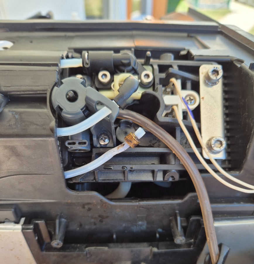 Habe im Service Modus versucht Entkalker durch den Kaffeeauslauf zu pumpen. Ging überhaupt nicht, das Wasser lief in die Tropftasse.