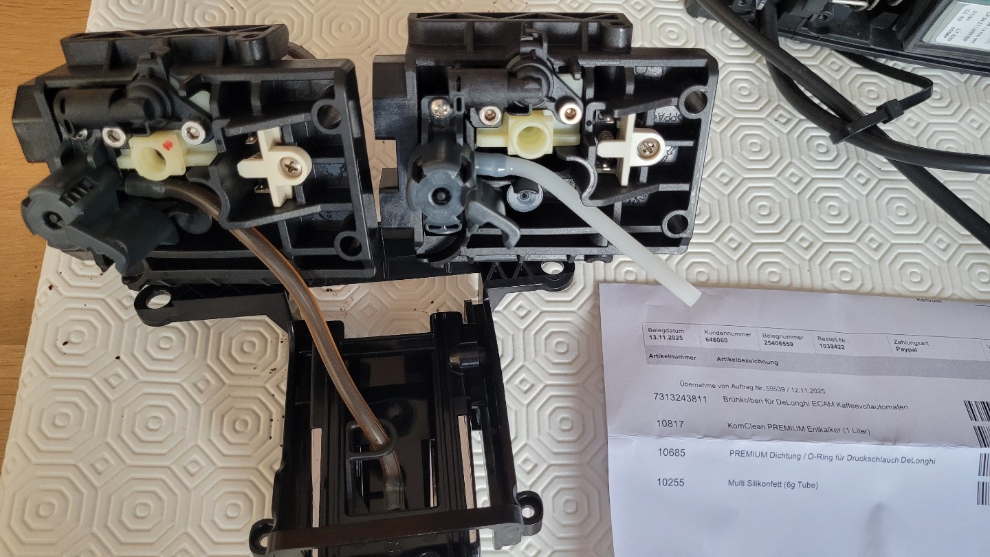 nachdem ich jetzt den KVA zerlegt und den Brühkolben ausgebaut habe, ist mir aufgefallen, dass das Ersatzteil leider doch nicht passt. Es hat einen zu kurzen Schlauch.