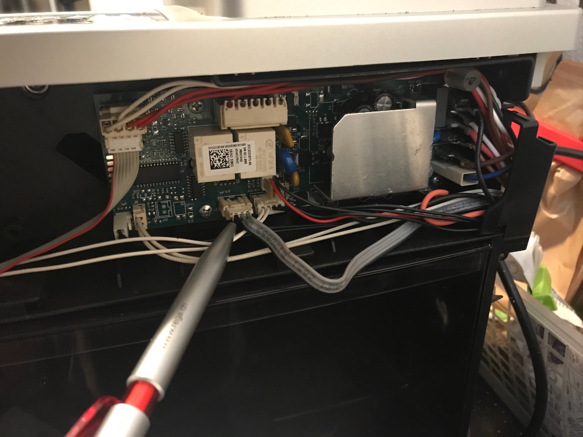 Wenn ich die Maschine mit ausgezogenem Sensorkabel (siehe Bild) starte und den Sensor einstecke wenn sie aufgestartet ist, funktioniert die Maschine.