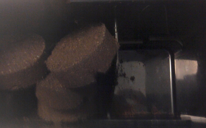 • Der Behälter ist keine Fehlkontruktion, die Meldung wird nicht über einen Sensor erzeugt. Es werden die Bezüge gezählt und nach 14 Bezügen wird normalerweise die Meldung ausgegeben, unabhängig davon, wie die Trestertabs im Behälter liegen.