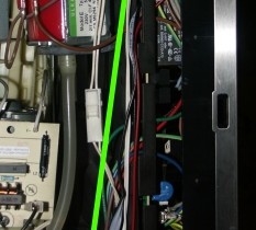 entlang der grünen Linien in der Maschine verlegt. In dem grünen Bereich (Bild 2) war das defekte Kabel verlegt, gequescht und eine Ader unterbrochen.