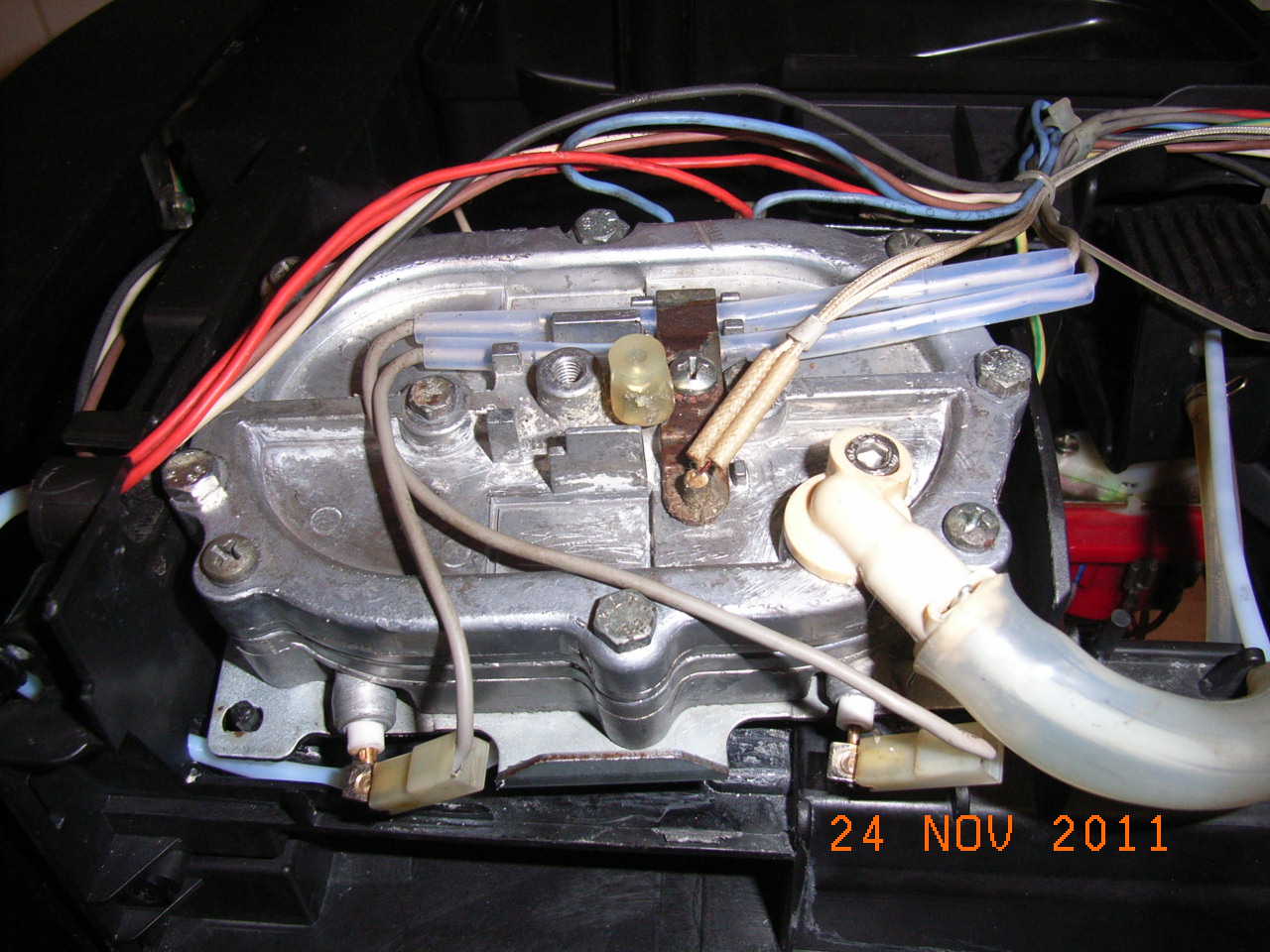 • Der TB ist defekt. Die Spuren am Dampferhitzer sind nach dem Foto schwer zu beurteilen, sehe ich aber als nicht relevant an. Die braune Verfärbung am Stecker kommt im Laufe der Zeit durch die Hitze, ist auch nicht relevant. Der 3. Kontakt am Magnetventil ist für den Schutzleiter, falls er denn angeschlossen wird.