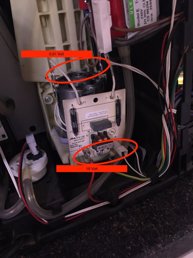 Wenn ich aber vor der Platine welches vor dem Motor vorgeschalten ist messe, bekomme ich kurzeitig 18 Volt oder so wen ich die Tasten dementsprechend drücke.