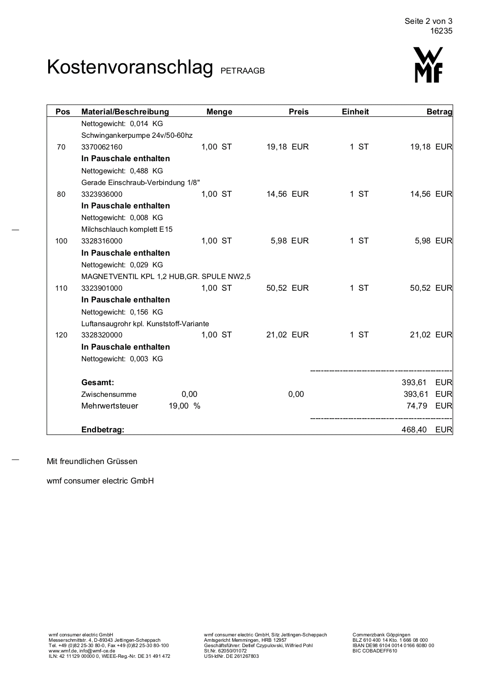Mittlerweile wäre ich ja schon froh wenn ich einen Kostenvoranschlag hätte.