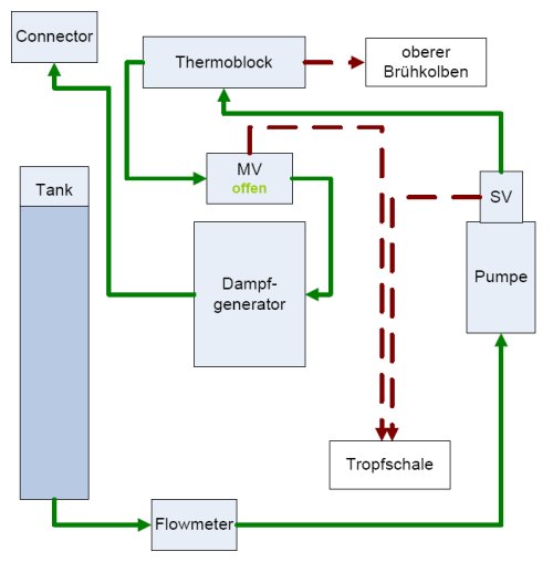Gibt es irgendwo eine Beschreibung, was wann in der Maschine passiert, wenn man zB Kaffee zieht,Heißes Wasser zieht etc? Ich glaube nämlich, dass ich die Ablauffunktionen (wann fließt welches Wasser wohin und wie wird es von den Ventilen gesteuert) noch nicht so ganz verstanden habe