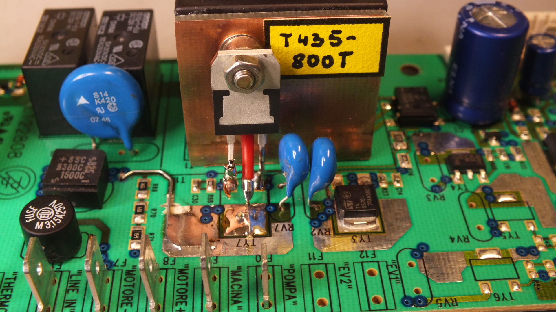 Messungen auf der Leistungsplatine haben ergeben, dasTRIAC TY7 einen Schluß hat, den habe ich ausgelötet.