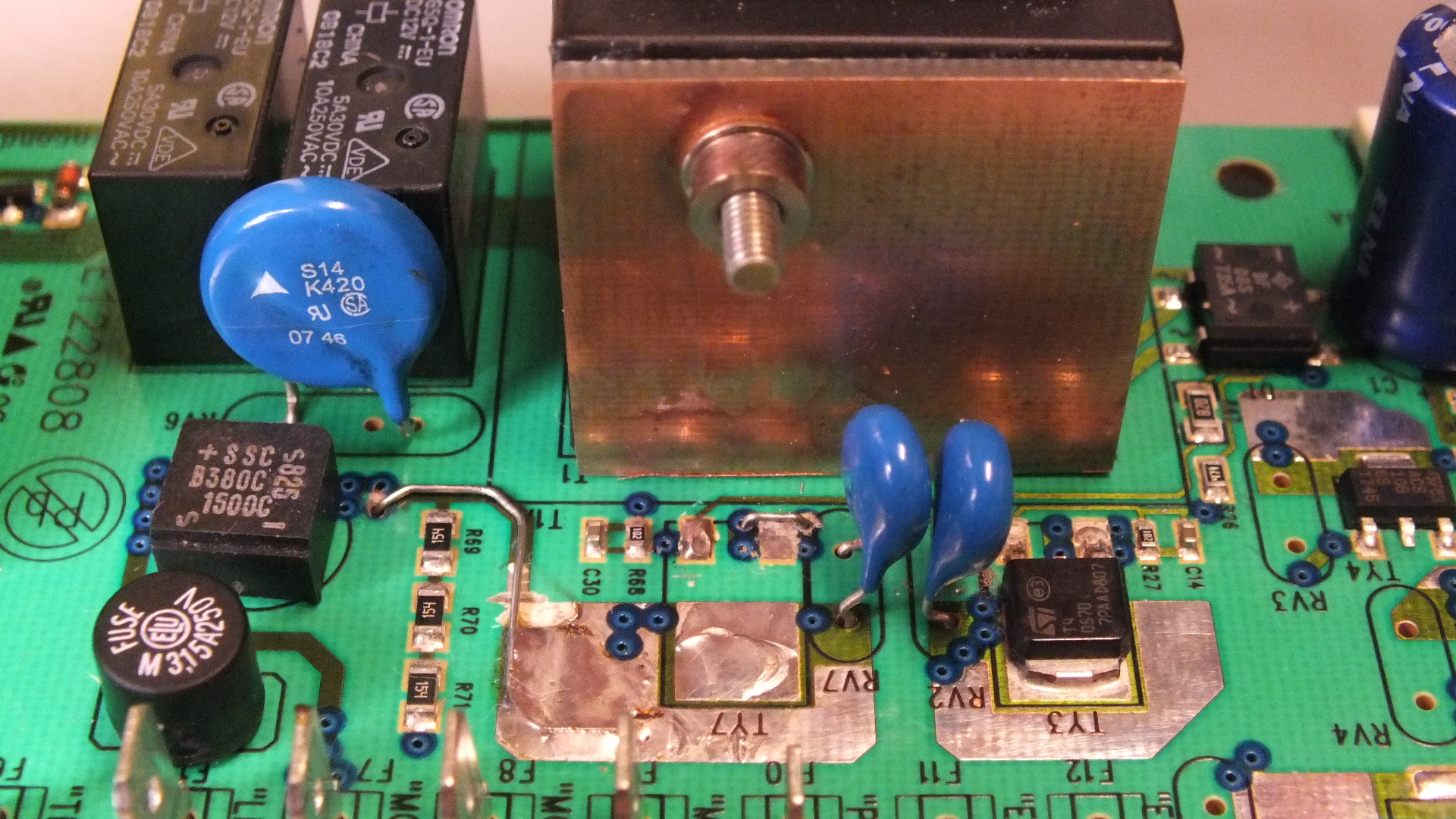 Messungen auf der Leistungsplatine haben ergeben, dasTRIAC TY7 einen Schluß hat, den habe ich ausgelötet.