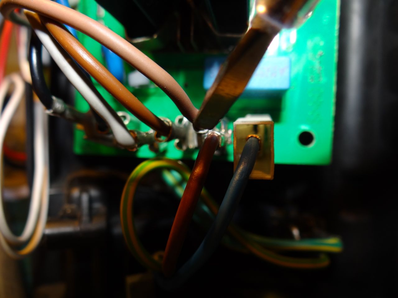 Mach nochmal ein Bild von der Platine, wo man alle Kabel und die Farben erkennen kann, bevor du die Maschine anschließt.Gruß Stefan