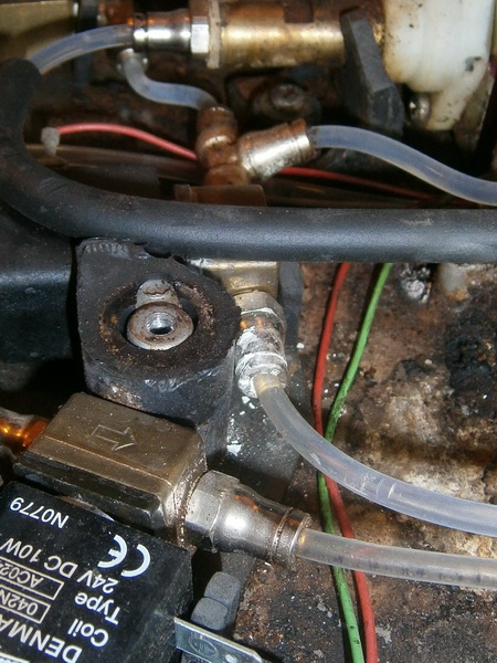 Ich habe testweise die Brühgruppe aus der anderen Maschine eingesetzt und schon gabs Kaffee