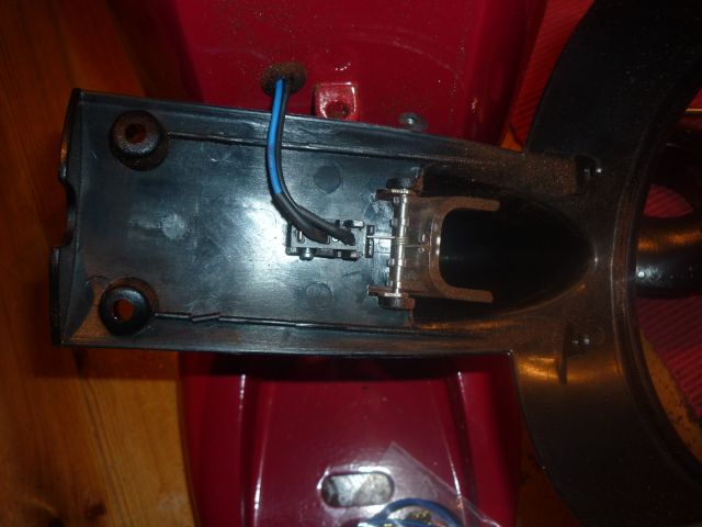 Der Mikroschalter ist unterhalb der Abdeckung. So kann man ihn einfach tauschen. Die Kabel werden einzeln durch das Gehäuse geführt. Der Gummistopfen, durch den die Kabel durchs Gehäuse geführt werden, habe ich aufgeschnitten und um das neue Kabel gelegt.