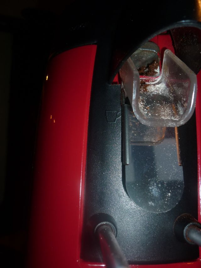 Lasst euch mal nicht von dem weißen Zeug irritieren. Ich hatte zuvor Dinkel gemahlen. Zu Reinigungzwecken. Ist doch erstaunlich, wieviel Kaffeemehl noch in der Mühle war, obwohl ich sie ausgepinselt hatte.
