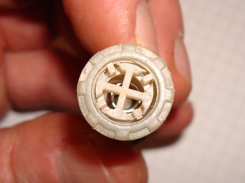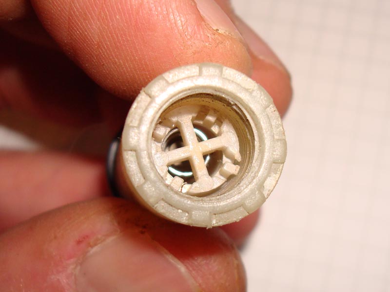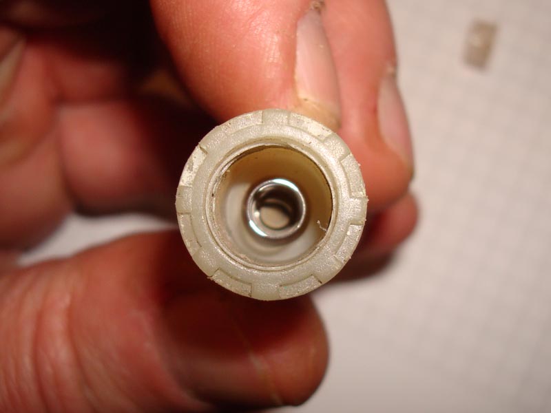• Im "Druckbereich" ist ein kleines Kunststoffkreuz sichtbar; hinter diesem ist ein Rückschlagventil.