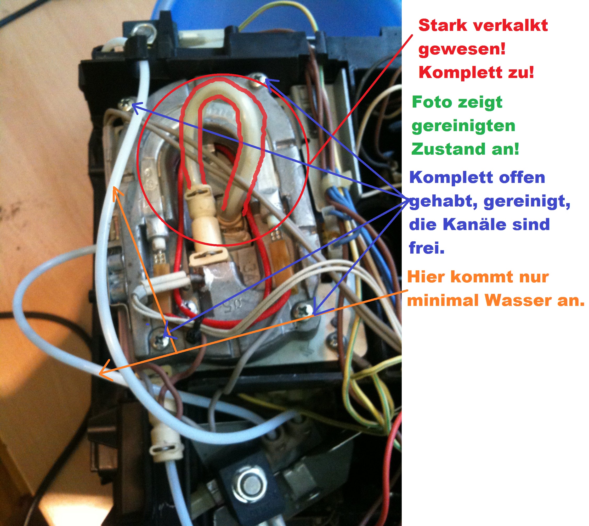 Da wird wohl eine neuer Thermoblock fällig sein. Im schlimmsten Fall sind die Leistungsplatine und/oder Bedienteilplatine auch gestorben.