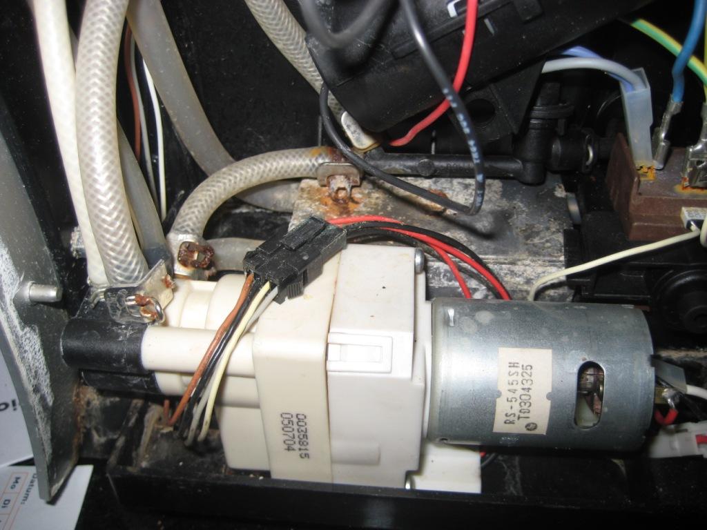 Der Schlauch vom Dampferhitzer zum Keramikventil ist geplatzt (hinten sieht man übrigens den von mir kürzlich eingebauten neuen Schlauch).
