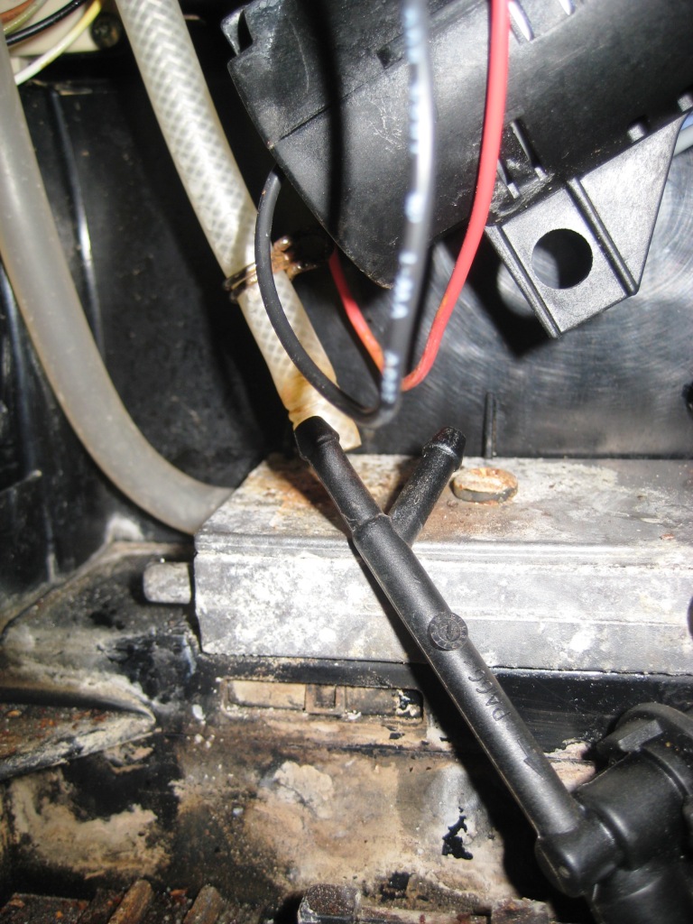Der Schlauch vom Dampferhitzer zum Keramikventil ist geplatzt (hinten sieht man übrigens den von mir kürzlich eingebauten neuen Schlauch).