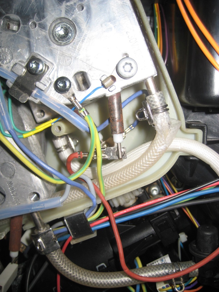 Der Schlauch vom Dampferhitzer zum Keramikventil ist geplatzt (hinten sieht man übrigens den von mir kürzlich eingebauten neuen Schlauch).