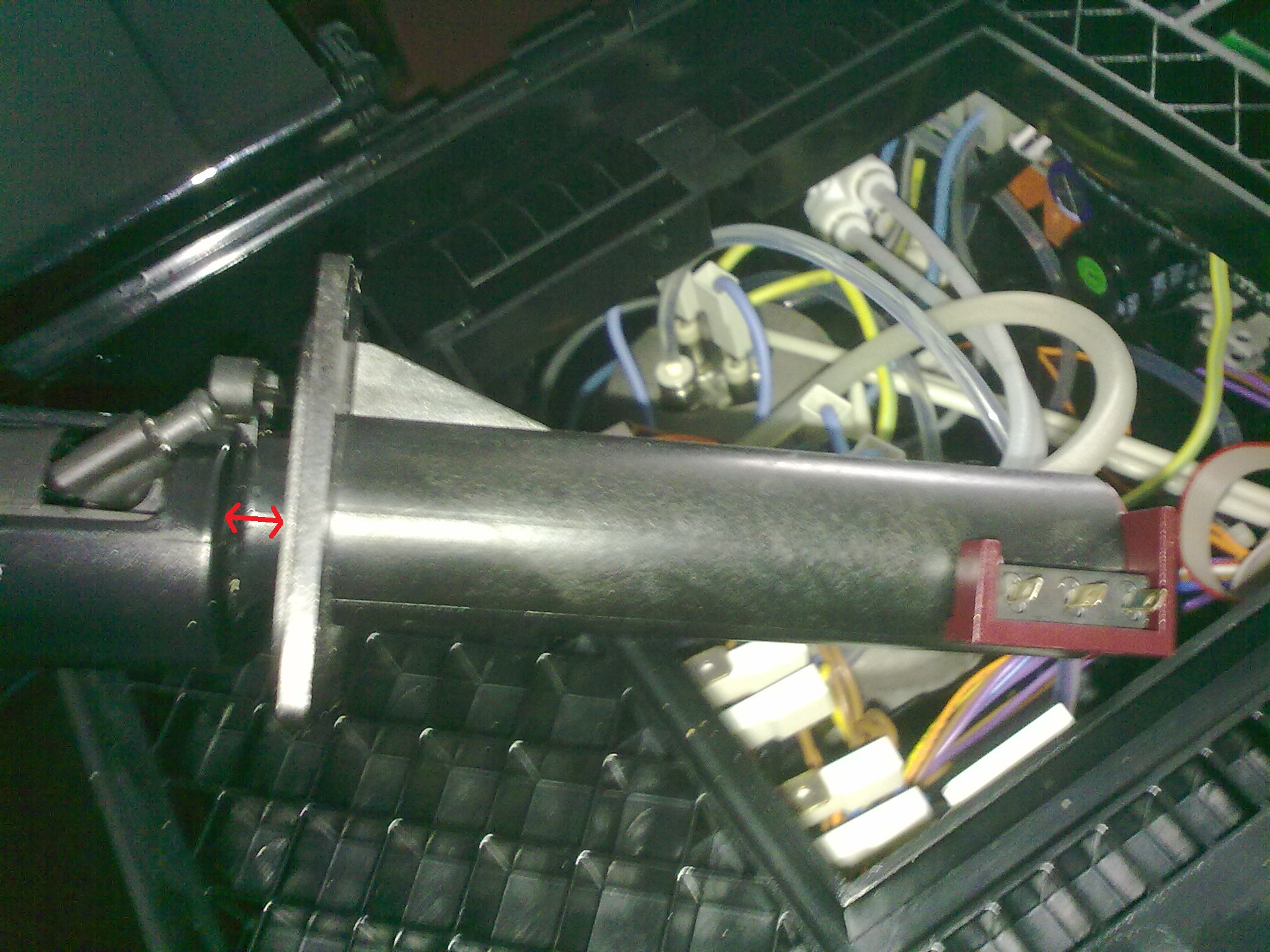 • Auf dem zweiten Bild kann man leider das Luftansaugrohr nicht ganz sehen. Ist das noch komplett? In dem Kunststoffrohr auf dem dritten Bild mit dem grünen Pfeil saß bei unseren WMF 800 mal das Komplette obere (dunkle) Teil des Luftansaugrohrs. Vielleicht hat sich bei dir da was gelöst was da oben drin steckt. Das wäre auch eine Erklärung, weshalb der Kombiauslauf nicht ganz nach oben geht.