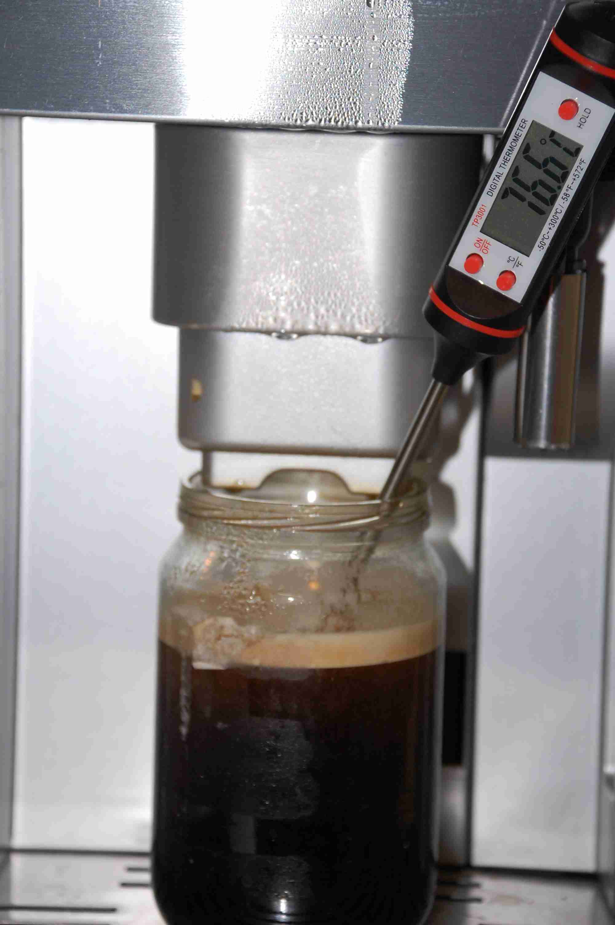 Ergebnis: Jetzt ist die gesammte Milchmenge bei unveränderter Einstellung deutlich weniger geworden und der Schaum ist wie gesagt nur einige Millimeter hoch. Beim Spülen kommt ordentlich dampf.