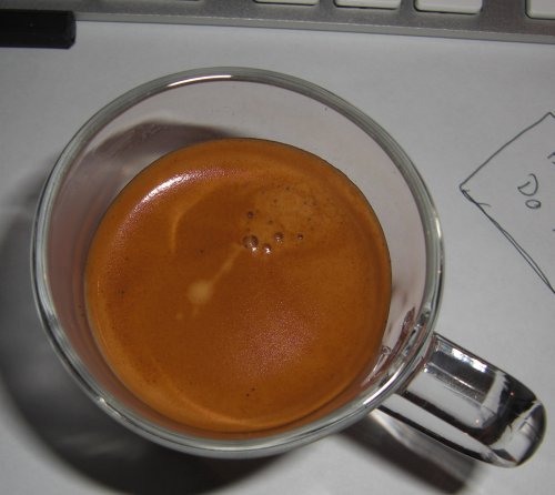 Die Blasen kommen vom zu frischen Kaffee, also bitte nicht wundern.