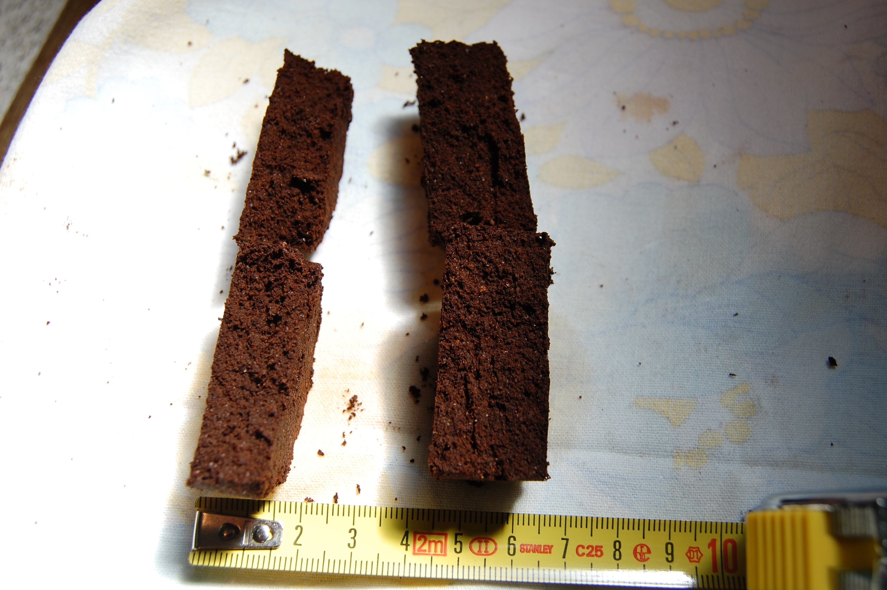 Das ganze entstand auf feinster Mahlstufe, beim Einzelbezug mit voller Wasser und halber Kaffeemenge.. vielleicht kann man ja was erkennen, da es nur ein Stück davon ist hab ich es zur Veranschaulichung mal abgemessen -