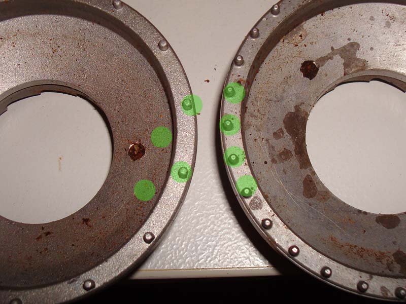 dass Loch zu Gewinde tatsächlich exakt übereinander liegt. Das Bild zeigt übereinander gelegte Mühlscheiben, hier sieht man den Unterschied.