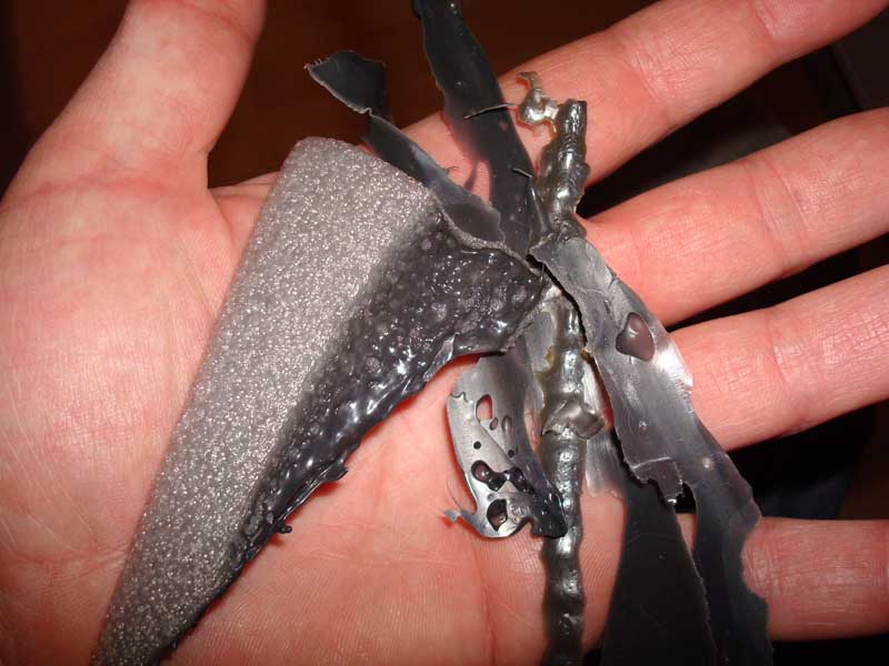 Bild 1 zeigt das ursprüngliche Isomaterial . . Bild 2 und 3 die Überbleibsel, welche teilweise sehr hartnäckig an den Boilern klebten . . .
