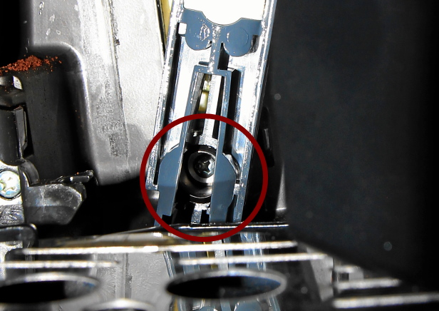 Der Brühkolben ist in oberer Stellung (wie beim Brühen). Ich tippe auf den Motor zum verstellen der Brüheinheit.