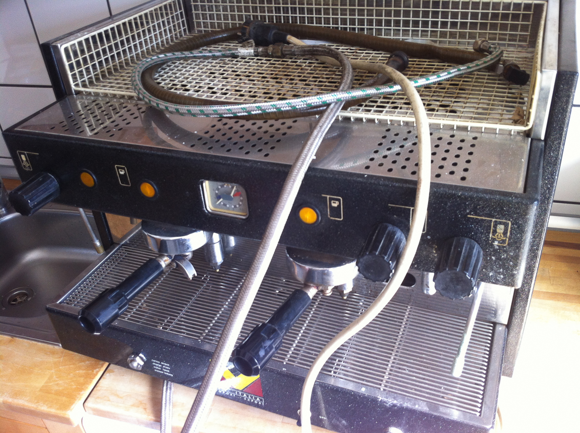 Kaffebezug funktionierte nicht! Der silberne Schlauch war dann auch wohl für Wasser und nicht für Gas (ich Depp).