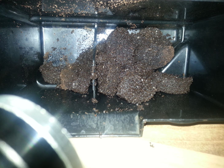 Derzeit steht die Mahlwerk Einstellung auf 5, dadurch sind die Tresterpucks sehr feucht und matschig so das das innnere öfters eingesaut wird.