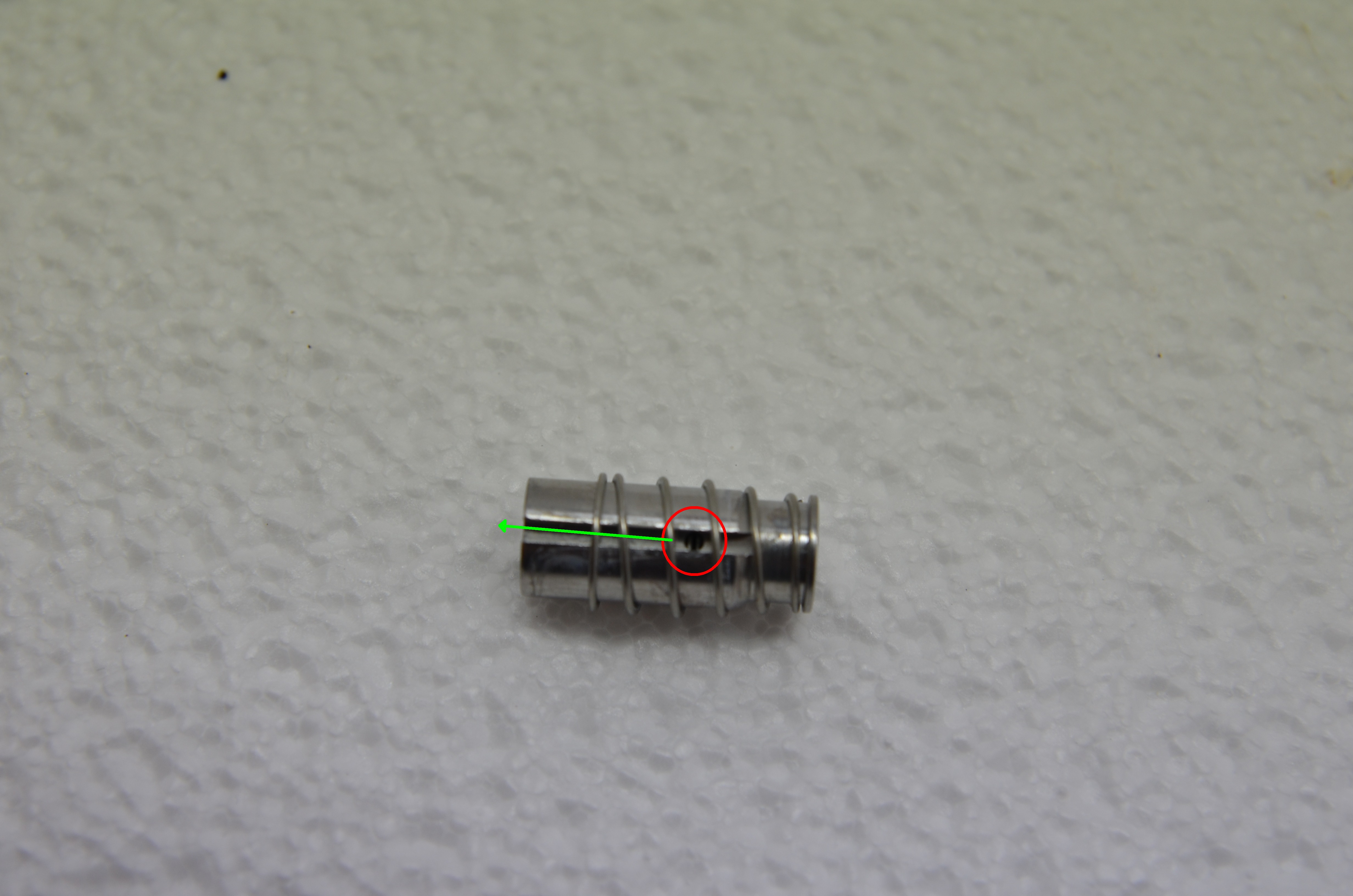 Sodann kann man das Teil noch mal vom unteren Sitz (dort wo die Wasserschläuche eingeführt sind) abschrauben, um dann einen inneren Zylinder mit einer Feder zu finden.