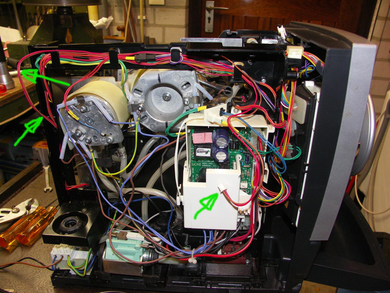 - Kann die Stelle für das Kabel der Microschalter deren die Anwesendheid der Tropfschale überwacht nicht finden. Es gibt kein Loch, Contrastecker oder anderes wo ich das Kabel anschliesen kann. Der Stecker hängt links vorne neben der Speisungseinheit. Im Drahtlängebereich sehe ich kein möglichkeiten.