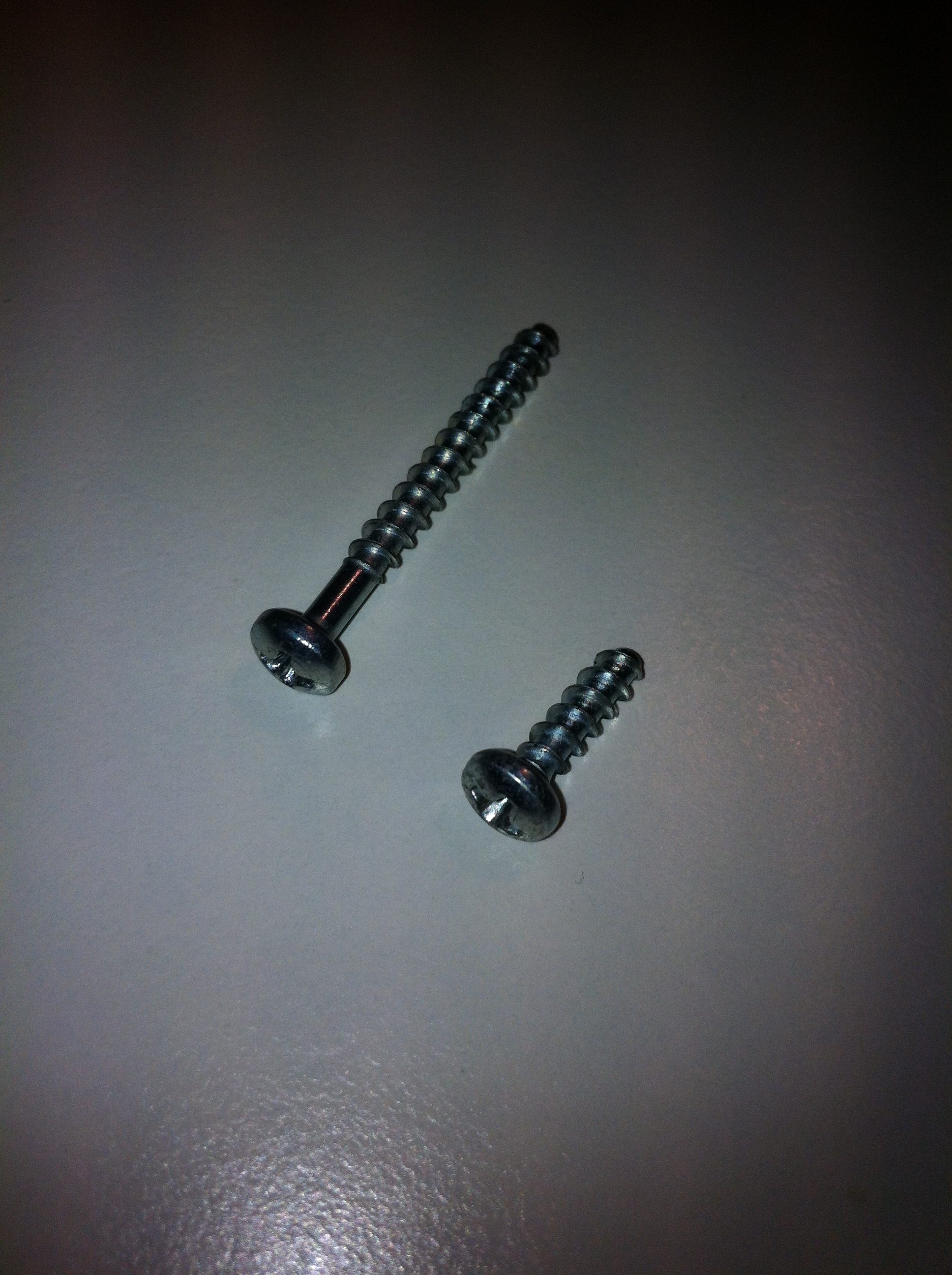 Leider ist mir eine etwas längere Schraube übrig geblieben. Im Anhand ein Foto. Im Vergleich dazu rechts eine der normalen/meist verwendeten Schrauben.
