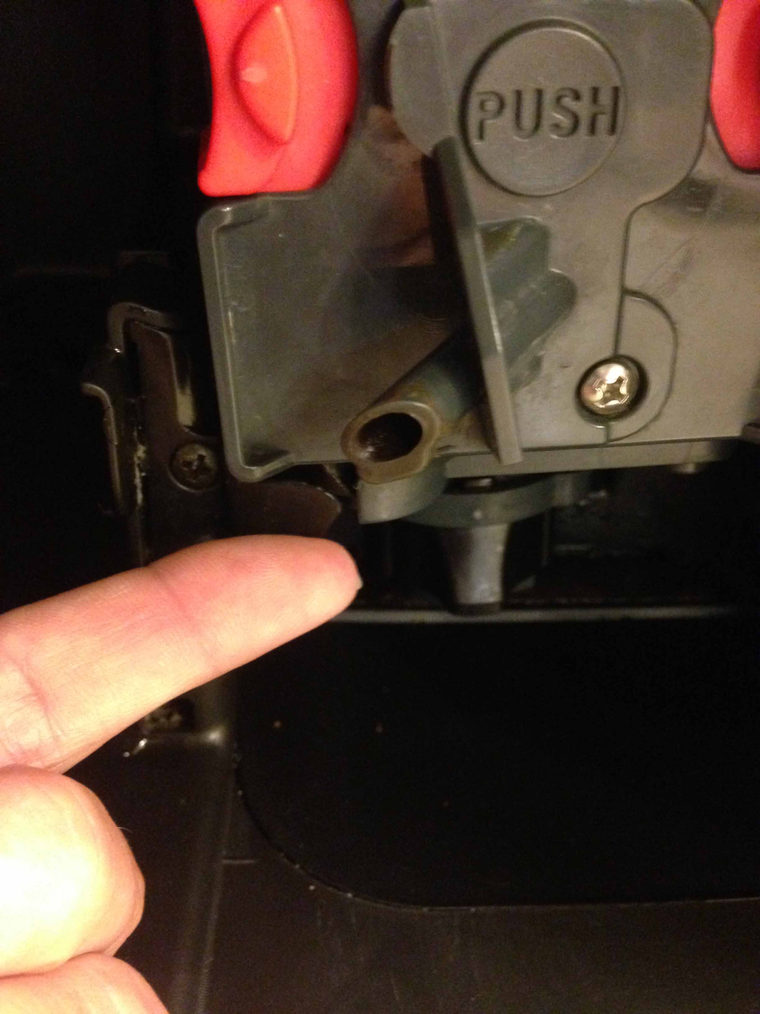 Ich hab jetzt mal versucht per Foto das Problem drauf zu bekommen (das Bild mit Finger zeigt, dass die Schraube unten nicht ganz richtig mehr sitzt die den Trester bewegt, wenn man die Brüheinheit mehr nach links oben drückt, dann geht die Schraube wieder)